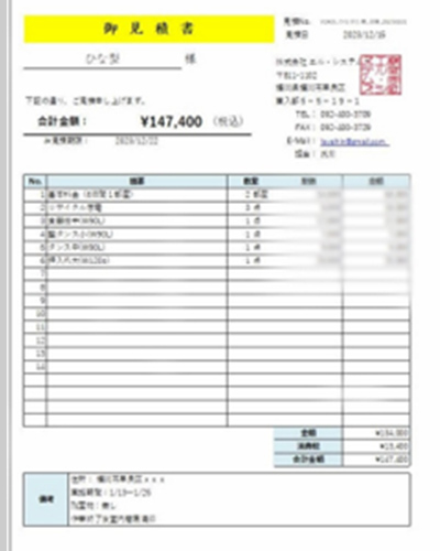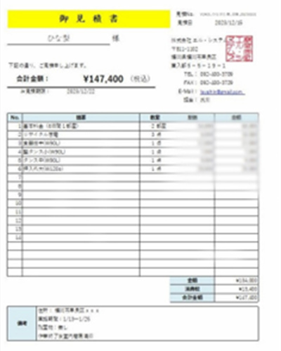 見積書の例。単価と数量を明確にして、追加費用を発生させません